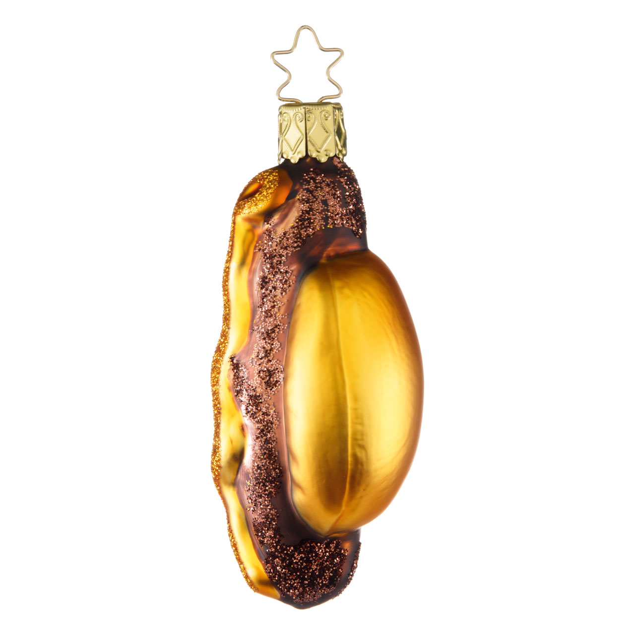 Sull'albero di Natale, nella sua veste festosa e scintillante, sembra essere adatto anche ai vegetariani e susciterà molti sorrisi; il motivo molto insolito è troppo divertente, l'aspetto tra tutte le forme più tradizionali di decorazioni dell'albero di Natale troppo glamour. Eppure la salsiccia nel suo panino è assolutamente armoniosa. Di colore marrone arrugginito, per così dire ben fatto, e abbondantemente spalmato di glitter, brilla incorniciato dal panino dorato. E la senape? C'è anche la senape, naturalmente: come una scia ondulata sulla sommità, anch'essa decorata con glitter. Delizioso!