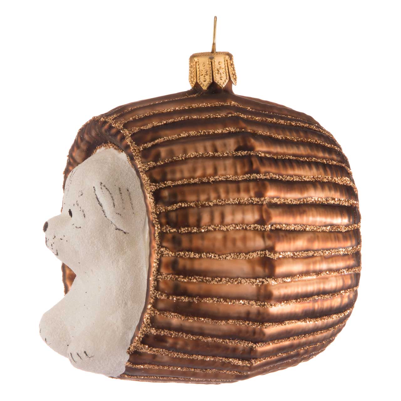 Il manto lussureggiante e scintillante del simpatico cagnolino brilla bianco e folto, mentre la testa e la parte superiore del corpo spuntano dal meraviglioso cesto con le zampe anteriori spesse e morbide. Gli occhi neri, il muso impertinente e alcune suggestive pennellate sul pelo del cane lo rendono ancora più giocoso. I contorni dorati e uniformi del cesto, altrimenti piuttosto semplice, riflettono in modo scintillante la pallina di Natale.