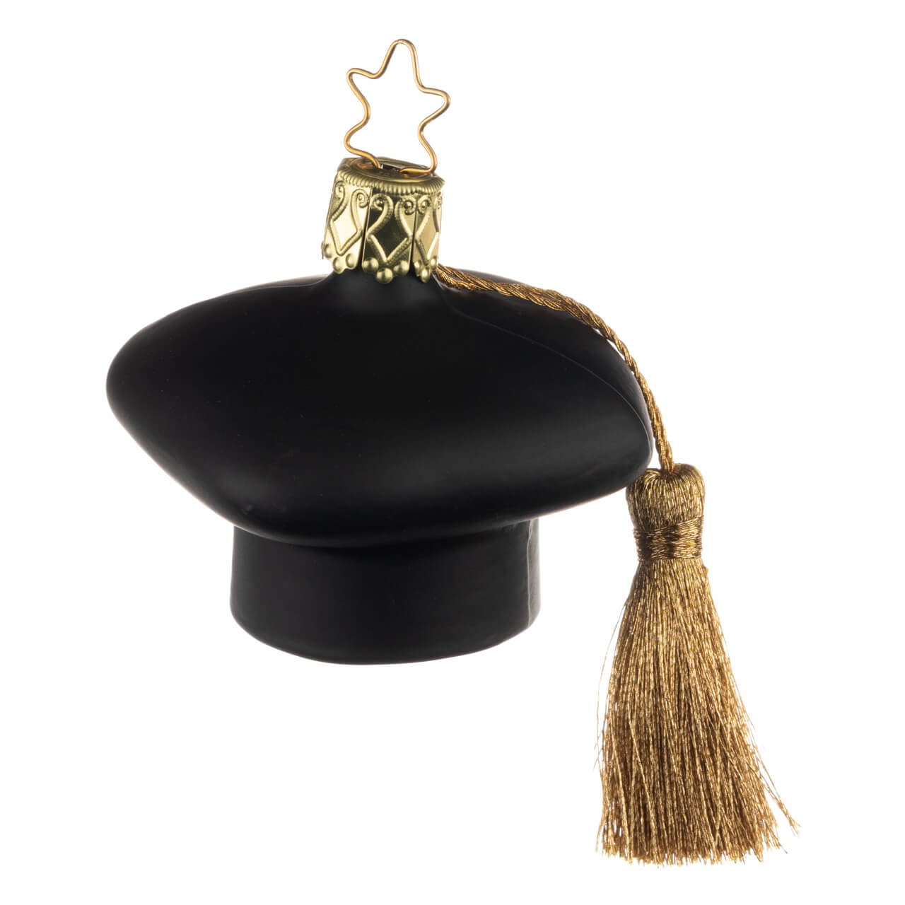 Tra l'altro, il famoso copricapo non è disponibile solo in un elegante nero opaco. La caratteristica nappina in filo d'oro lucido pende dalla corona della statuetta dell'albero di Natale.