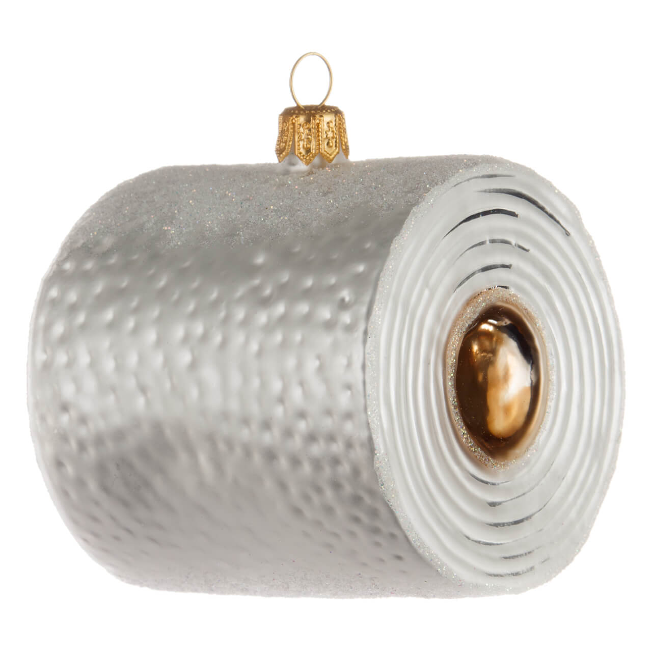 Ora ritorna qui. Classico, semplice e non spendibile. Inconsumabile, per la precisione, perché la carta opaca, scintillante e biancastra con i piccoli punti in rilievo e la delicata polvere di glitter bianco-argento è in realtà fatta di vetro fine. Per l'albero di Natale, o meglio: per tutti coloro che, dopo l'esperienza degli anni passati, preferiscono avere un rotolo di riserva in casa e che prendono la vita con una cosa sopra ogni altra: con umorismo.