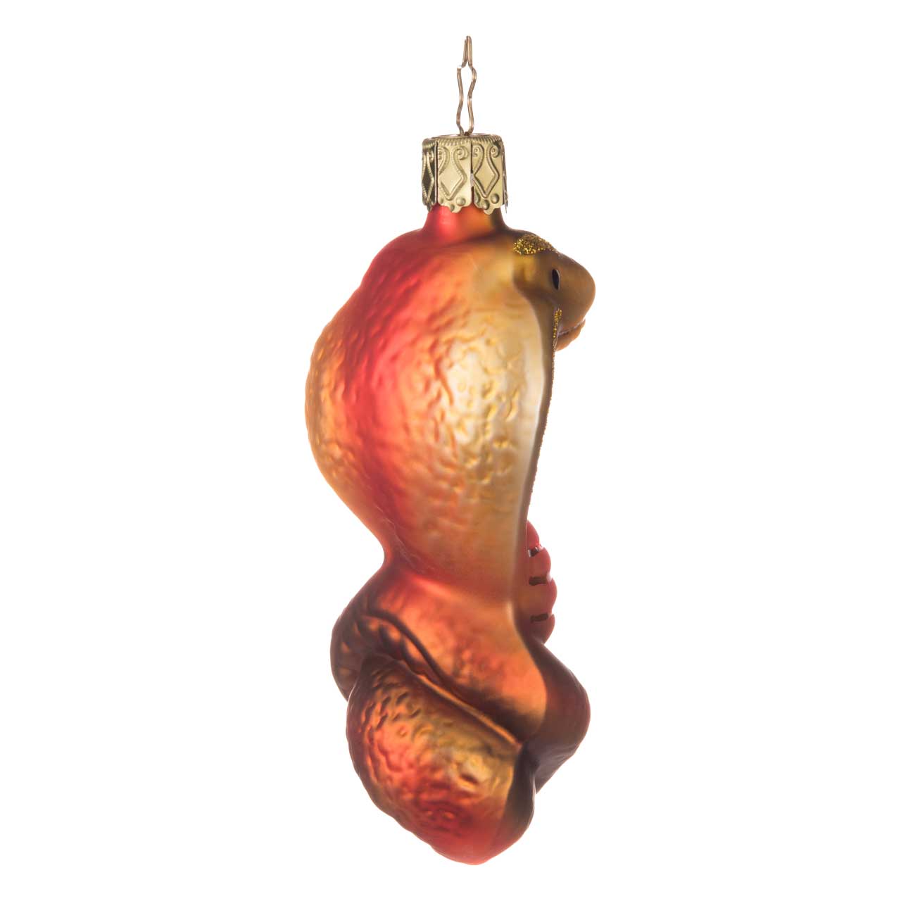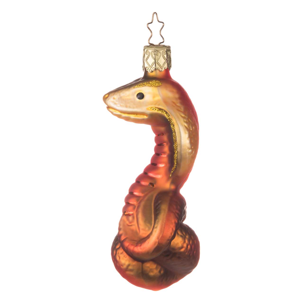 Questo disegno raffigura un cobra eretto dalla forma ricurva e dal corpo nei caldi toni del rosso e dell'oro. Le squame sono finemente lavorate e il caratteristico cofano è sottolineato da accenti dorati. Il gioco di superfici lucide e opache conferisce un aspetto vivace, quasi mistico.