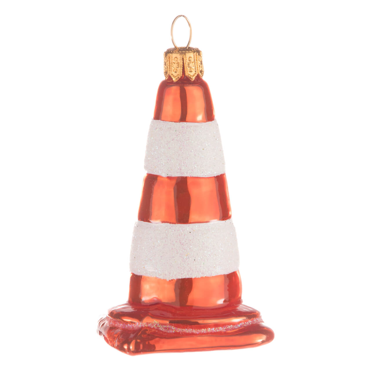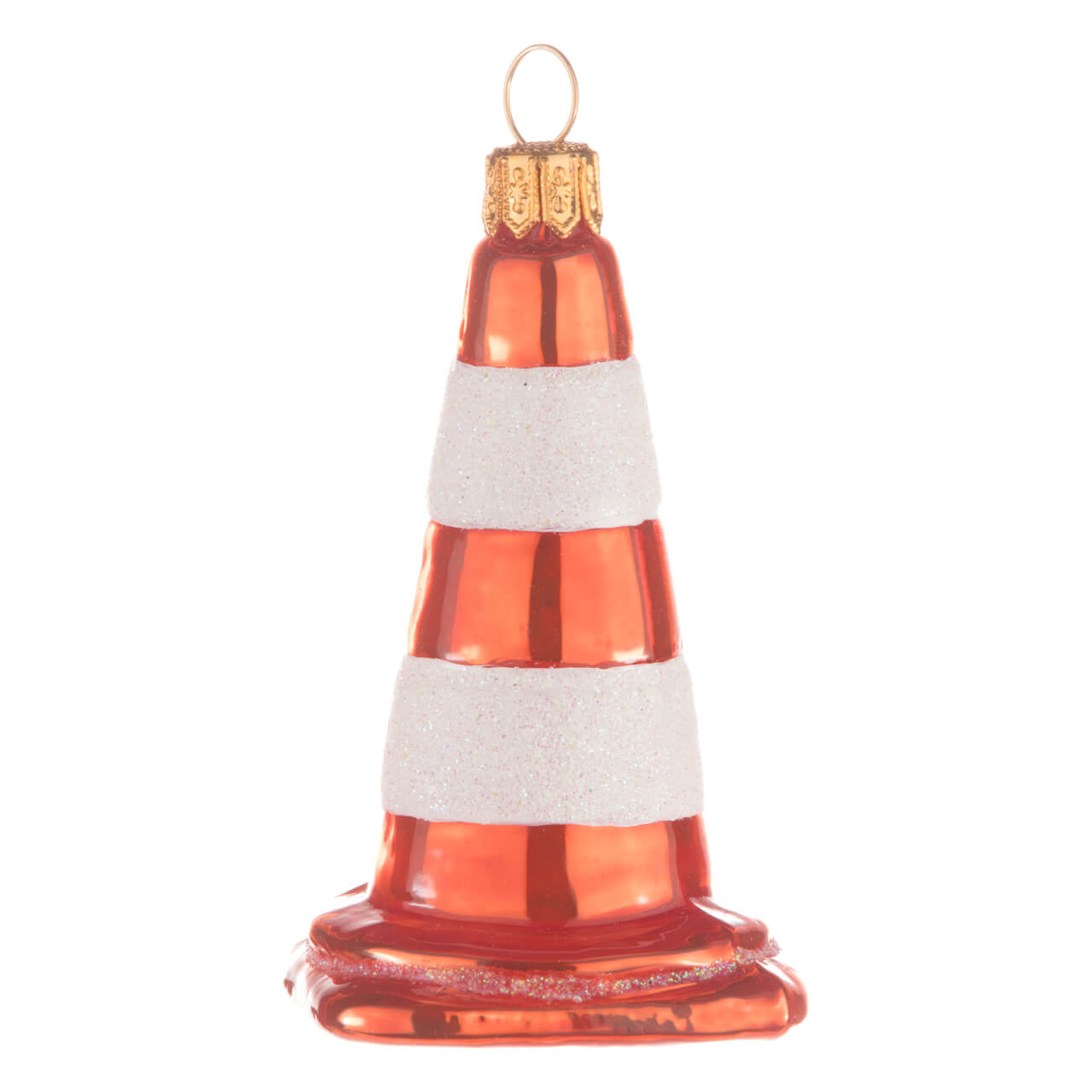 Per la sua forma armoniosa, con la quale attira l'attenzione anche come figura dell'albero di Natale? Di certo non è fuori posto nel verde dell'abete, anche se è insolito. Dopotutto, c'è un accessorio da cantiere che penzola dalla corona dorata, ma si è davvero vestito a festa. Il corpo in gomma di vetro brilla di un festoso colore arancione ed è ornato da due ampie banderuole bianche scintillanti. Una linea di glitter trasparente orna anche il contorno della base.
