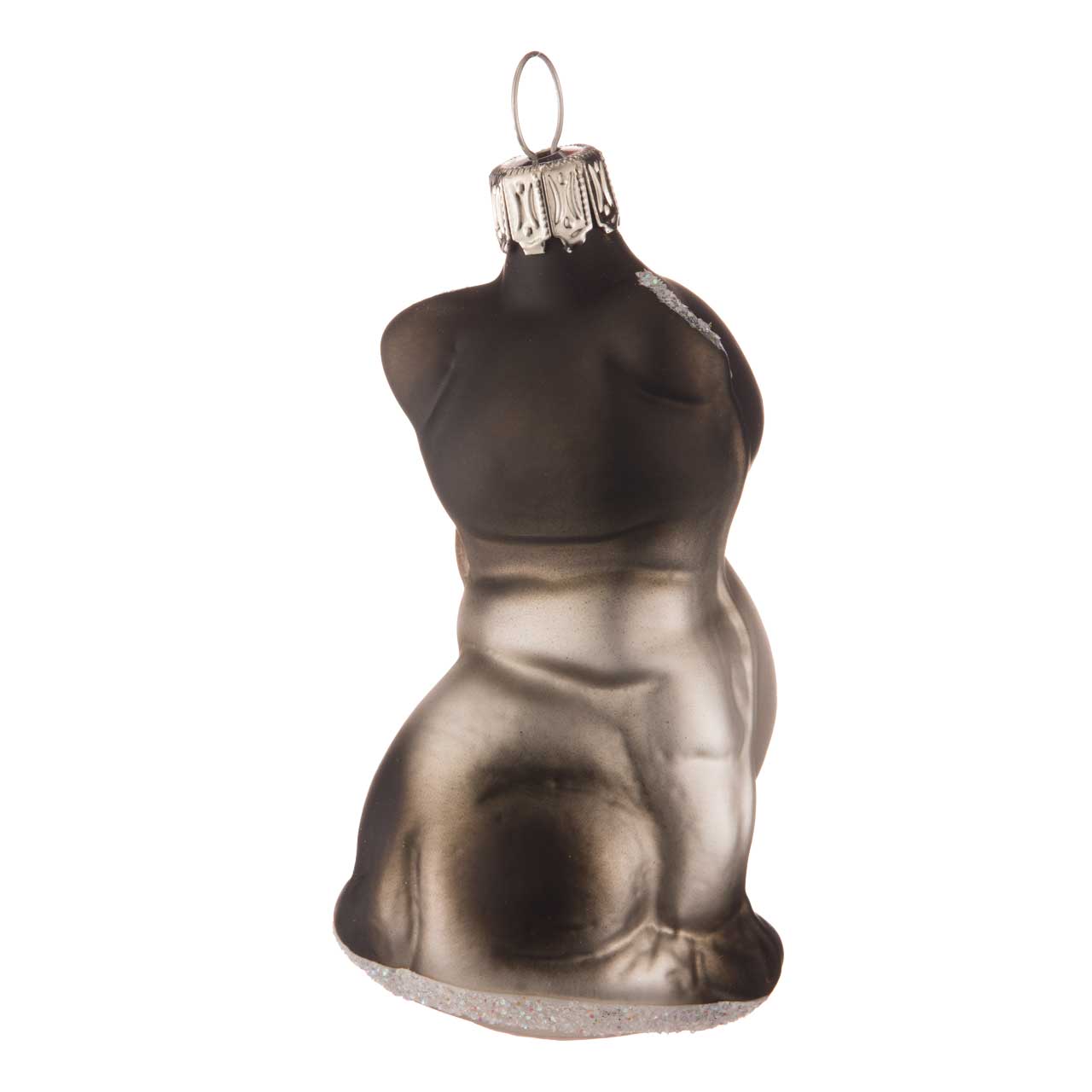 Questa statuetta raffigura un gatto seduto nei toni delicati del grigio e del nero, con tratti del viso sottili e una postura leggermente giocosa. Il corpo ha un aspetto opaco e setoso, con piccoli accenti di brillantini che ne sottolineano i contorni. Un pezzo affascinante dai colori armoniosi che piacerà subito agli amanti dei gatti.