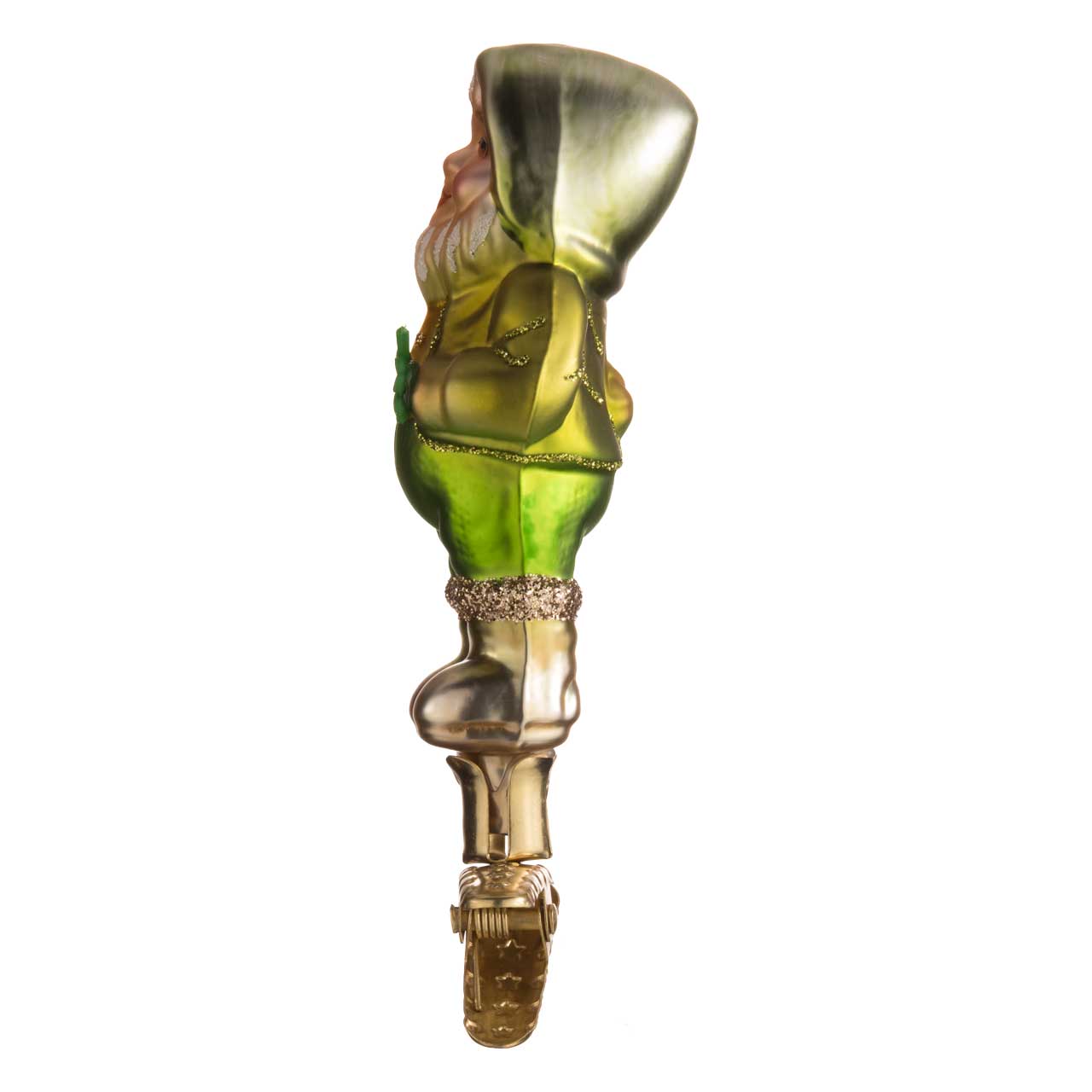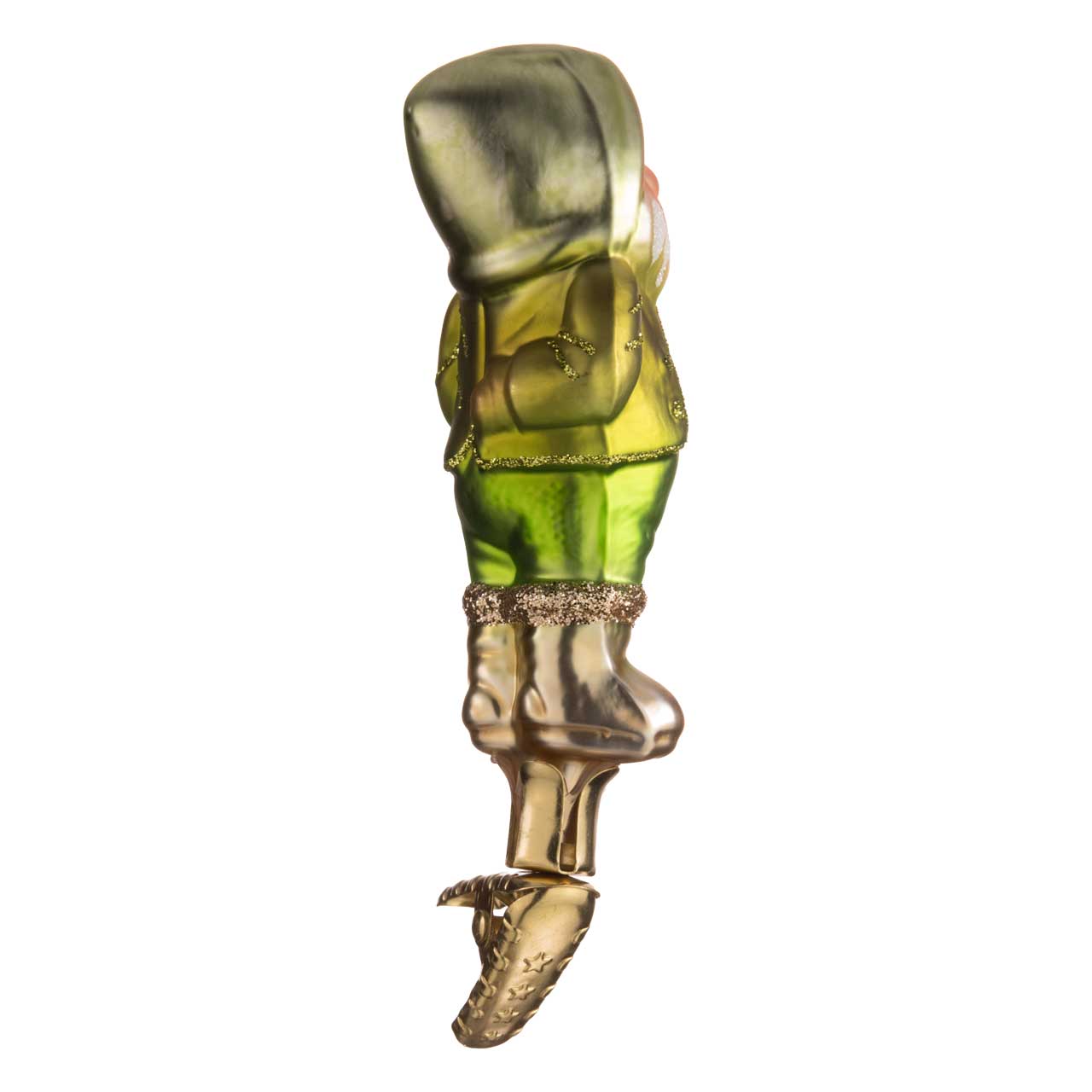 La palla è disegnata come una figura allungata di nano e colpisce per la sua superficie lucida. La combinazione di colori è dominata da freschi toni verdi nell'abbigliamento, combinati con accenti dorati e caldi e una barba bianca. Il piccolo trifoglio verde nella mano è un ulteriore richiamo simbolico.