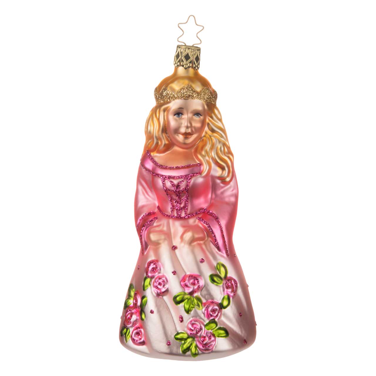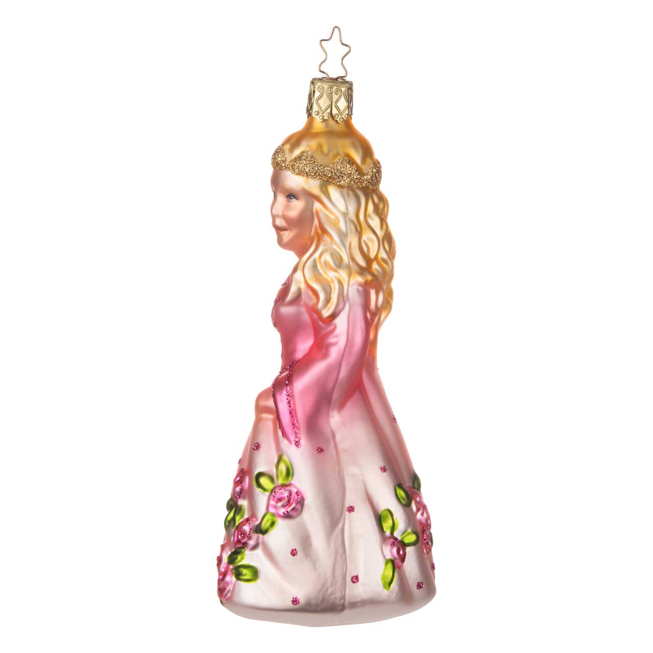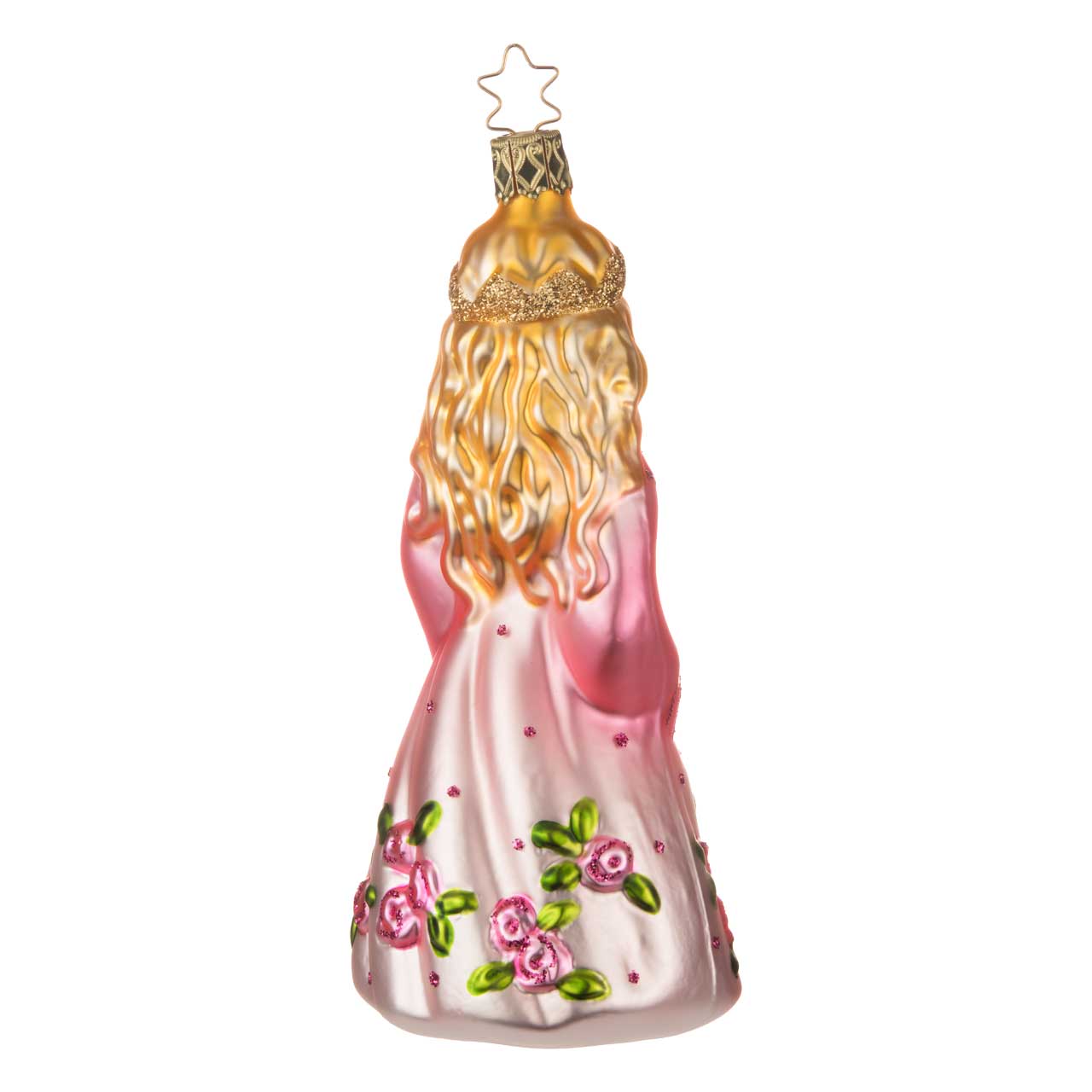 La statuetta raffigura la Bella Addormentata come una principessa dai capelli e dalla corona d'oro. Il suo abito è disegnato in rosa e bianco brillante, decorato con ornamenti di rose scintillanti in rosa e verde. La forma è figurativa, con linee fluide che sottolineano l'elegante drappeggio dell'abito.