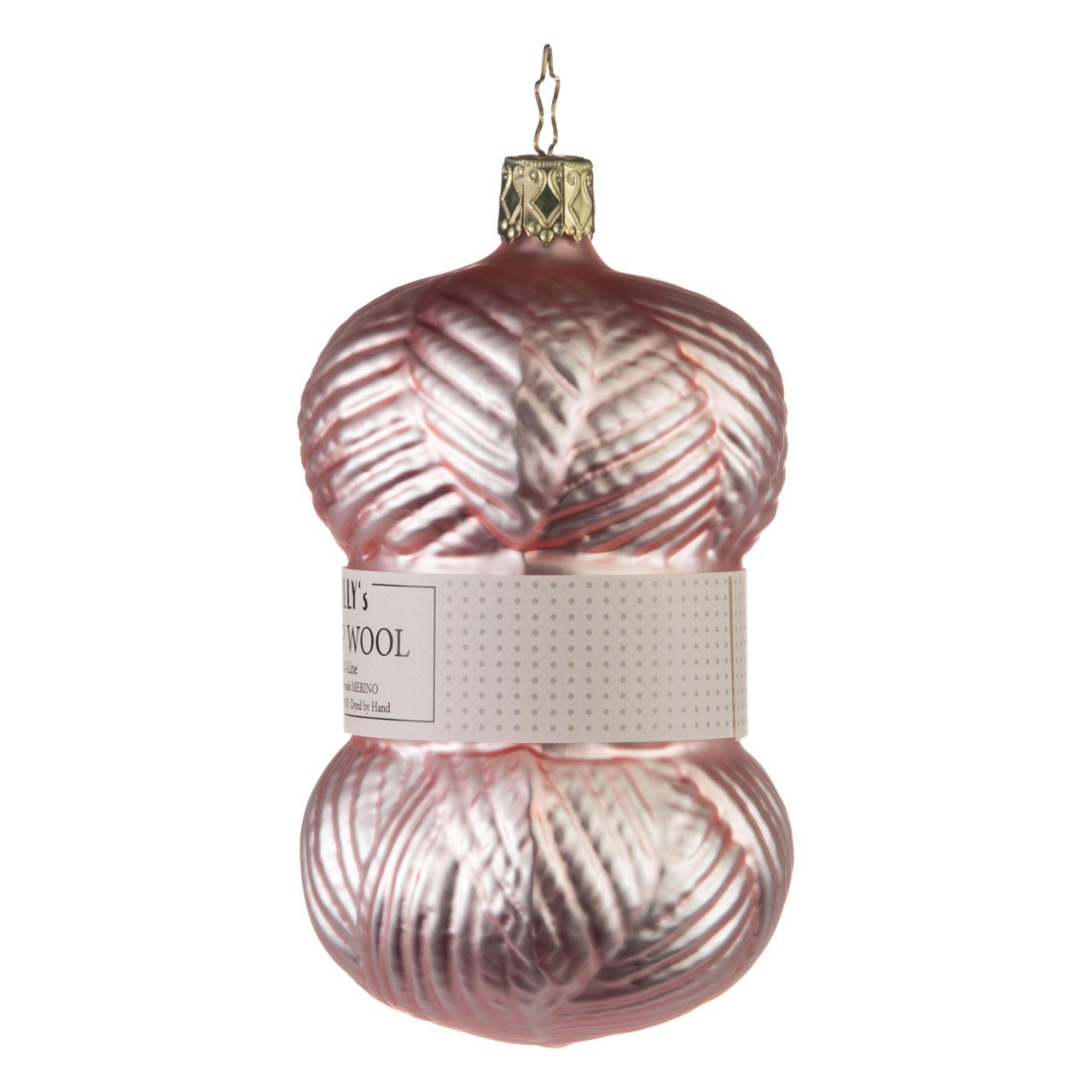 Lavorare a maglia rende felici! Lavorare a maglia è bellissimo! Soprattutto quando la lana è morbida e accogliente. Come questa... "Molly's Sheep Wool" è impresso sulla banderuola di carta del gomitolo per l'albero di Natale. Certo, la lana fine è fatta di vetro. Tuttavia, la sua finitura leggermente color pastello emana un'eleganza impressionante che suggerisce la massima qualità.