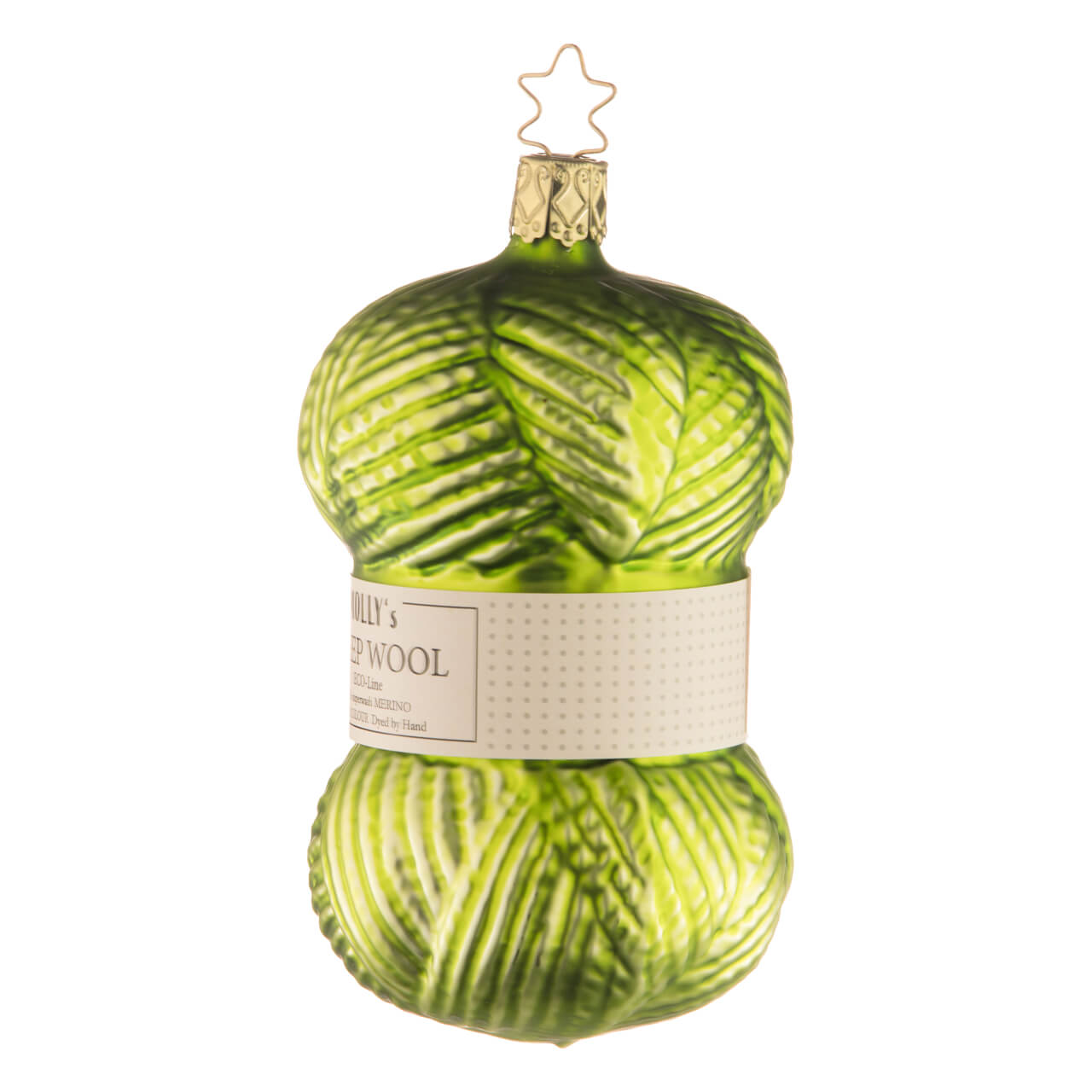 Lavorare a maglia rende felici! Lavorare a maglia è bellissimo! Soprattutto quando la lana è morbida e accogliente. Come questa... "Molly's Sheep Wool" è impresso sulla banderuola di carta del gomitolo per l'albero di Natale. Certo, la lana fine è fatta di vetro. Tuttavia, la sua leggera finitura color pastello emana un'eleganza impressionante che suggerisce la massima qualità.