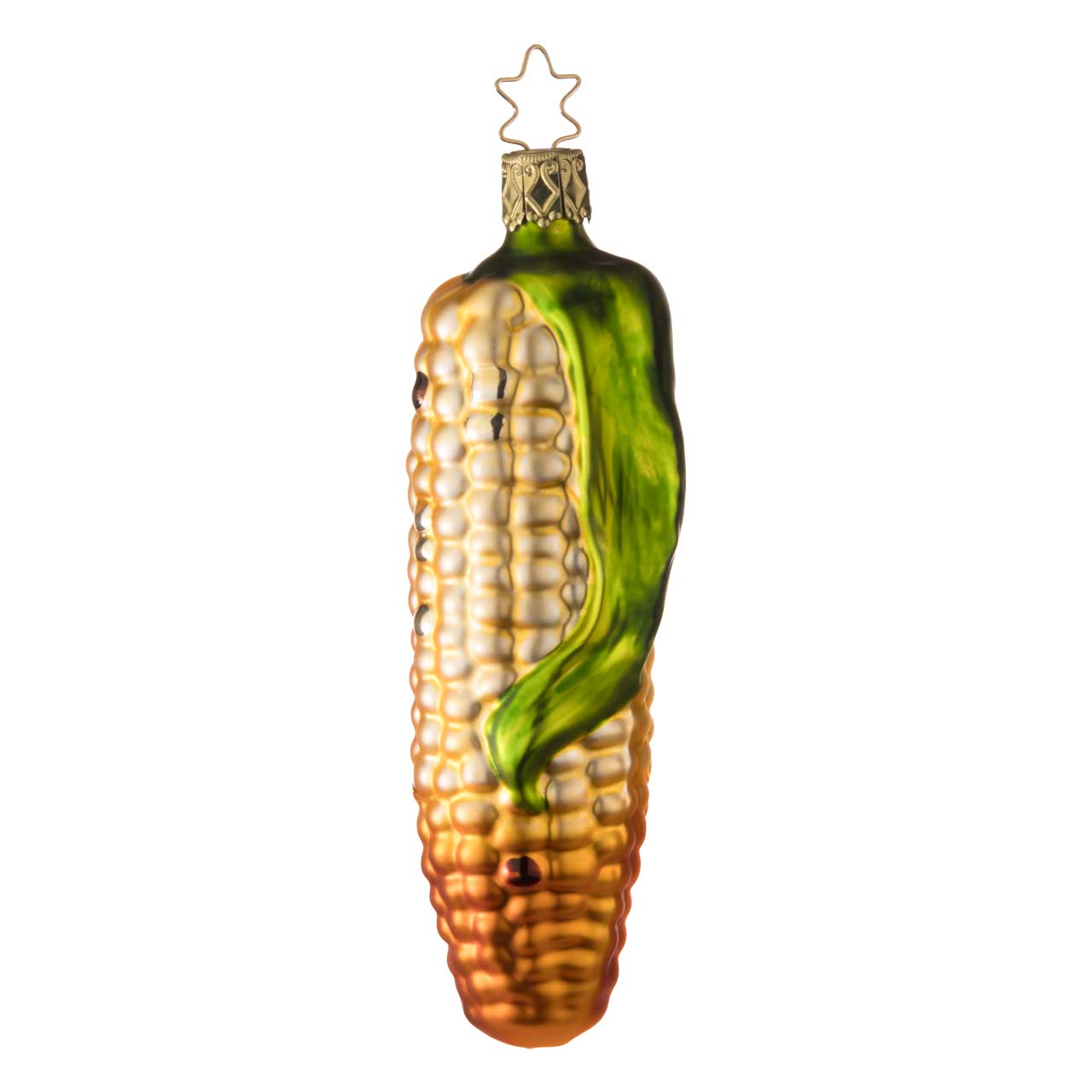 La palla è disegnata come una pannocchia di mais allungata e presenta chicchi realisticamente lavorati, di colore giallo oro o leggermente abbronzati e un accenno di foglia verde. La figura colpisce per la sua forma slanciata e i colori caldi nei toni del giallo, dell'oro e del verde, che le conferiscono un aspetto vivace e appetitoso.