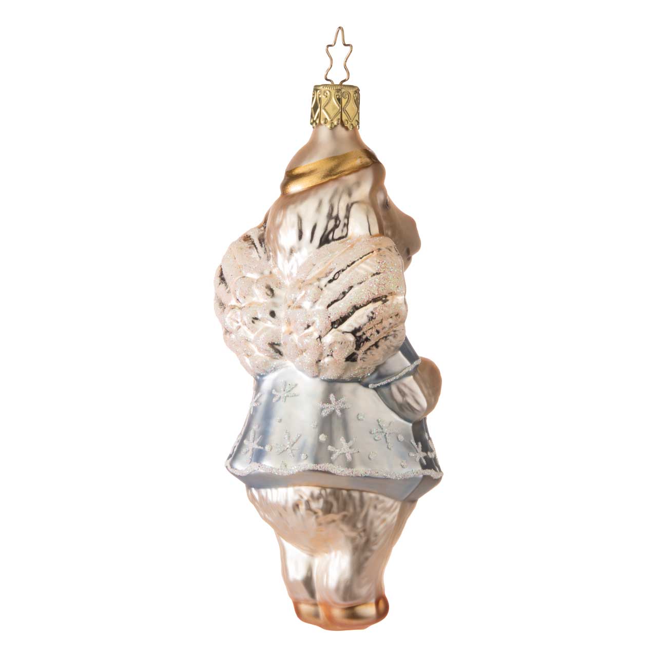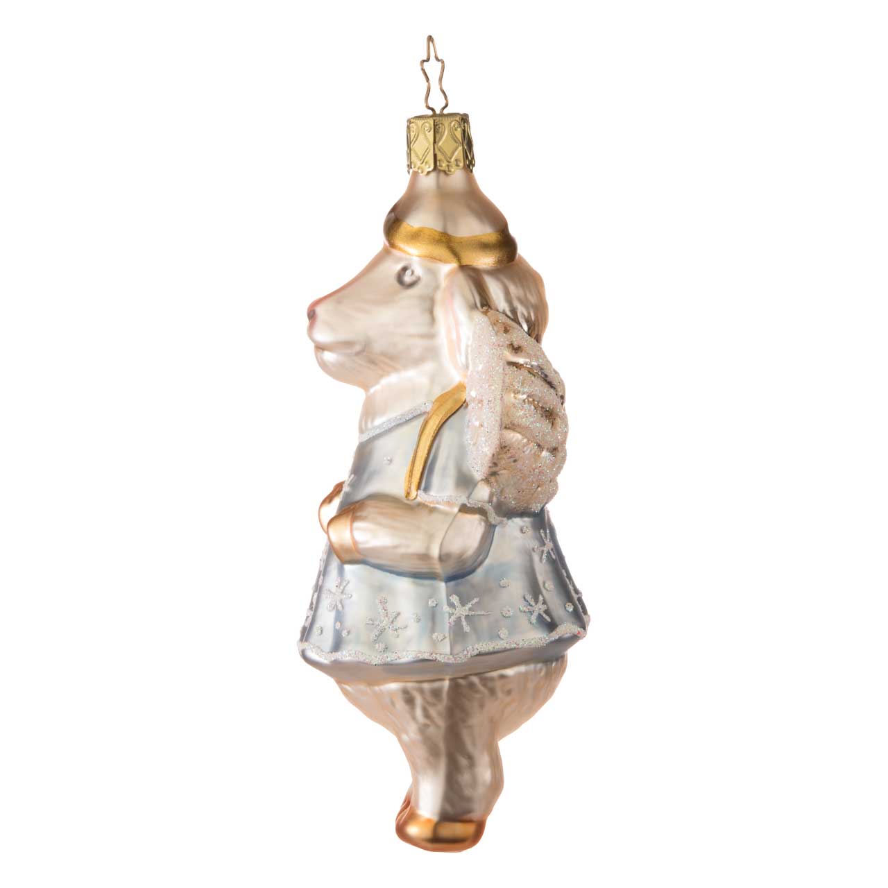 Il motivo della pecora celeste si ricollega a una lunga tradizione di simbologia dolce e pacifica. Le pecore hanno sempre simboleggiato la tranquillità, la sicurezza e una certa innocenza, qualità particolarmente adatte alla stagione delle feste. In molte storie e raffigurazioni, accompagnano le scene di festa come osservatori silenziosi o incarnano armonia e protezione. Questa pecora sembra quasi un piccolo essere celeste: con ali delicate, un'espressione del viso gentile e un atteggiamento che irradia serenità. Ricorda un po' la silenziosa compagna di un fiabesco paese delle meraviglie invernale, che veglia silenziosamente su tutto e diffonde un'atmosfera calda e rasserenante
