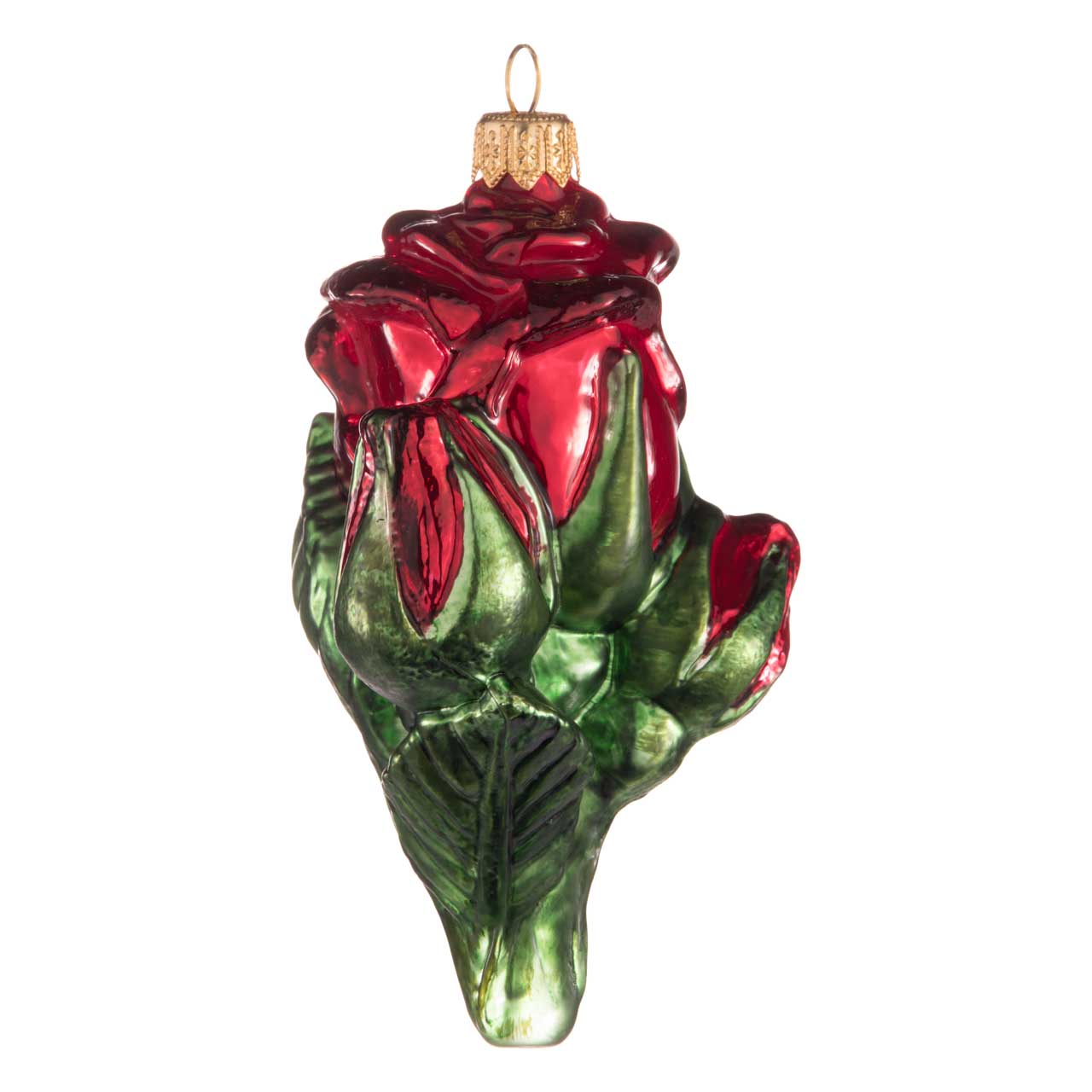 Non è solo il fiore preferito di molti e un vero e proprio classico quando si parla di piante da fiore. La rosa rossa simboleggia anche la bellezza e l'amore. Per questo motivo è particolarmente bella sull'albero di Natale con il suo colore ricco. Piena, formosa e con altri due boccioli che si aprono, ha un aspetto meravigliosamente rigoglioso e naturalistico.